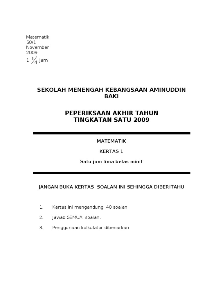 Soalan Akhir Tahun Matematik Tingkatan 4 adalah antara bahan-bahan terbaik yang kami adaBahan yang terdapat di sini memenuhi keperluan Pentaksiran Berasaskan Sekolah yang dilaksanakan secara menyeluruh mengikut prinsip bahawa semua mata pelajaran yang terkandung dalam KSSM memainkan peranan yang penting bagi memenuhi keperluan jasmani. Soalan Peperiksaan Soalan Percubaan Soalan KBAT Nota Modul Soalan Latihan. Sains SPM Tingkatan 4 5.