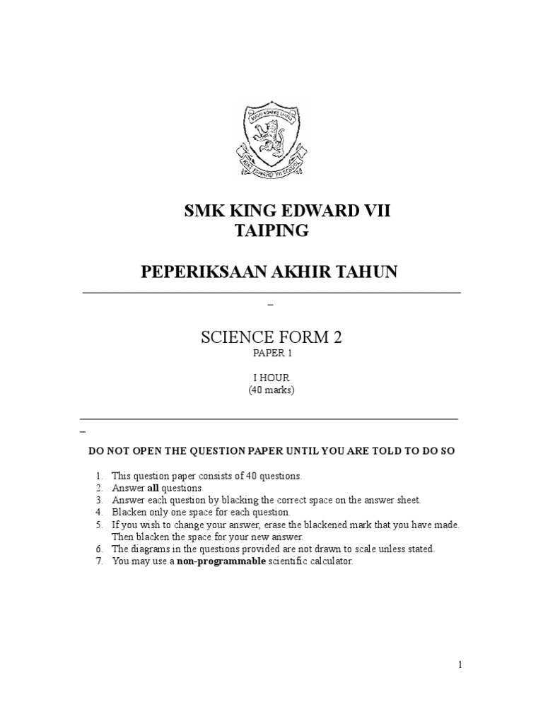 peperiksaan akhir tahun sains tingkatan 4
